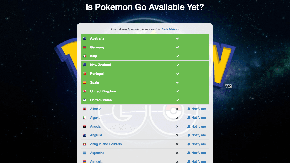 Pokémon Go is not the first product to launch in stages across the world. Apple does it time and time again. Refreshing the manufacturers website to see if a product can be ordered is nobodies hobby. Could we make it easier for people to be notified when a service or product launches in their country? We think we can.