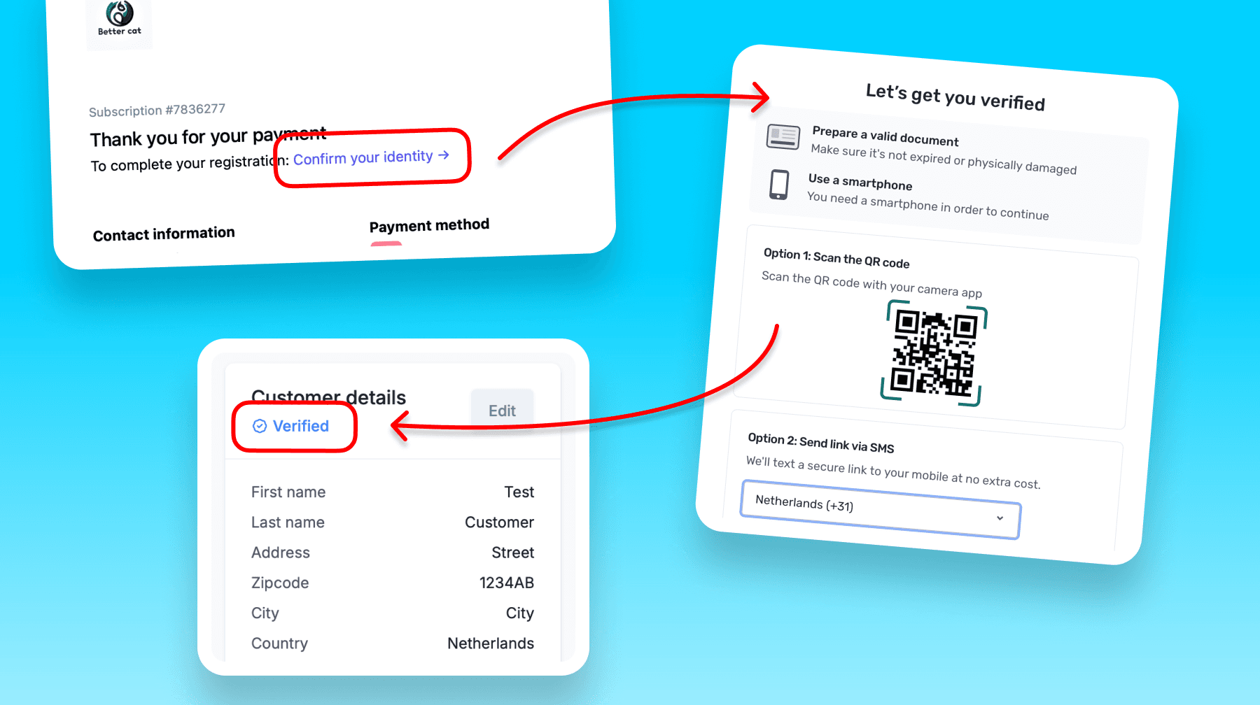 The magic happens when your customer signs up for a subscription and makes their initial payment. Before they’re fully onboarded, they will receive a prompt to verify their identity.