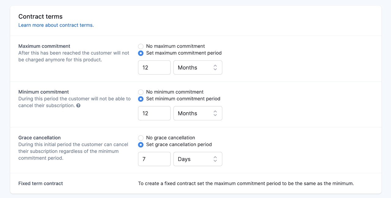 Contract terms for products - set a maximum and minimum billing period per product in your assortment.