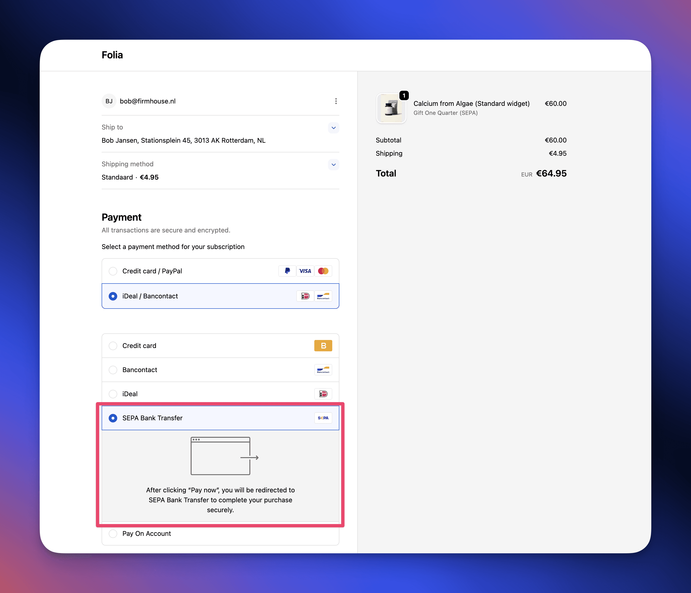 Full support for iDEAL, Bancontact, and SEPA subscriptions