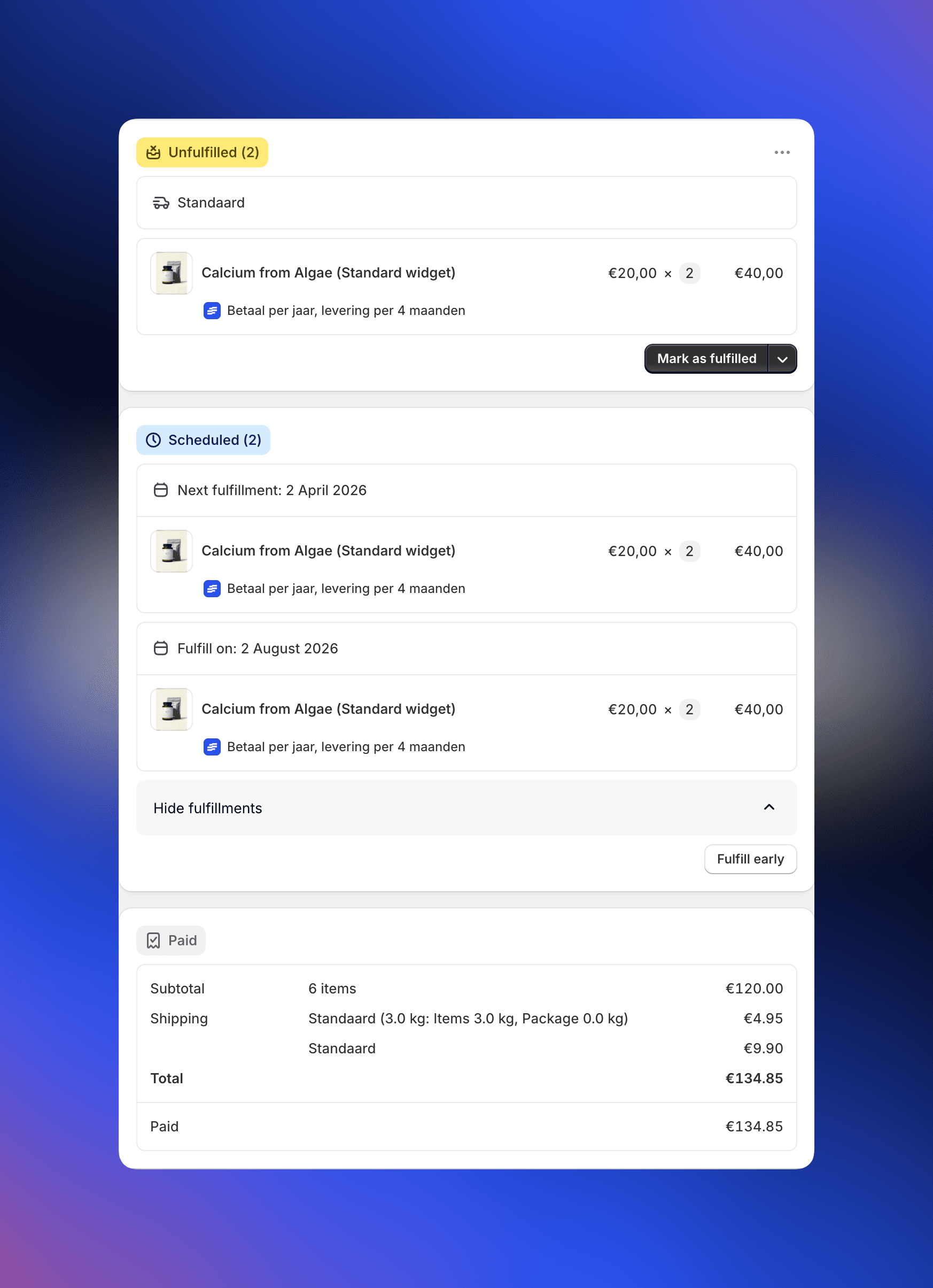 Firmhouse ensure that future delivers are automatically scheduled and created as Shopify orders the moment that they need to be fulfilled.