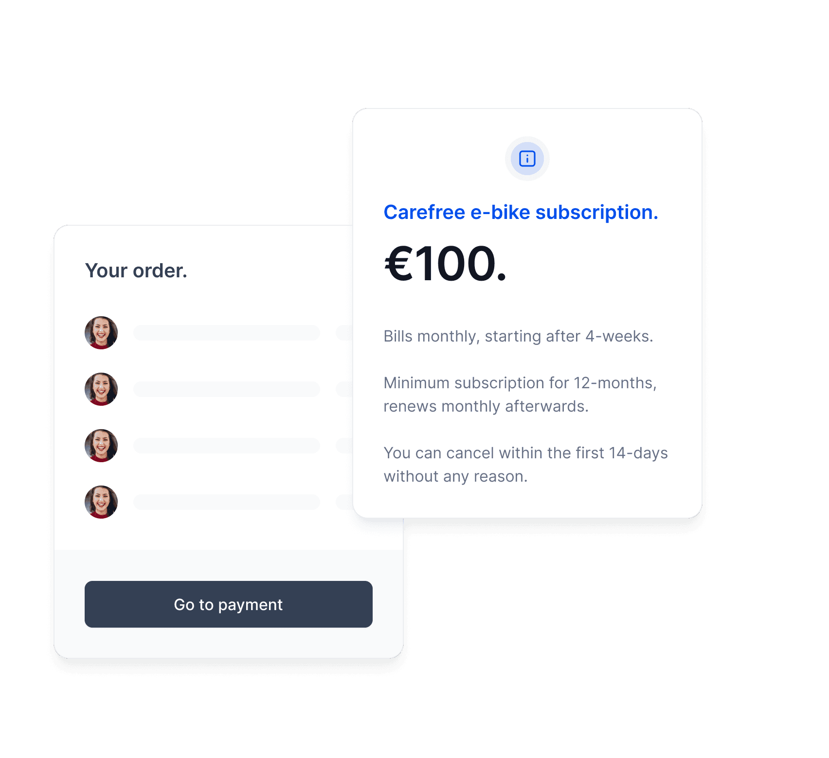 Let customers experience your product with a trial period and give them a simple path to ownership inside Shopify Checkout.